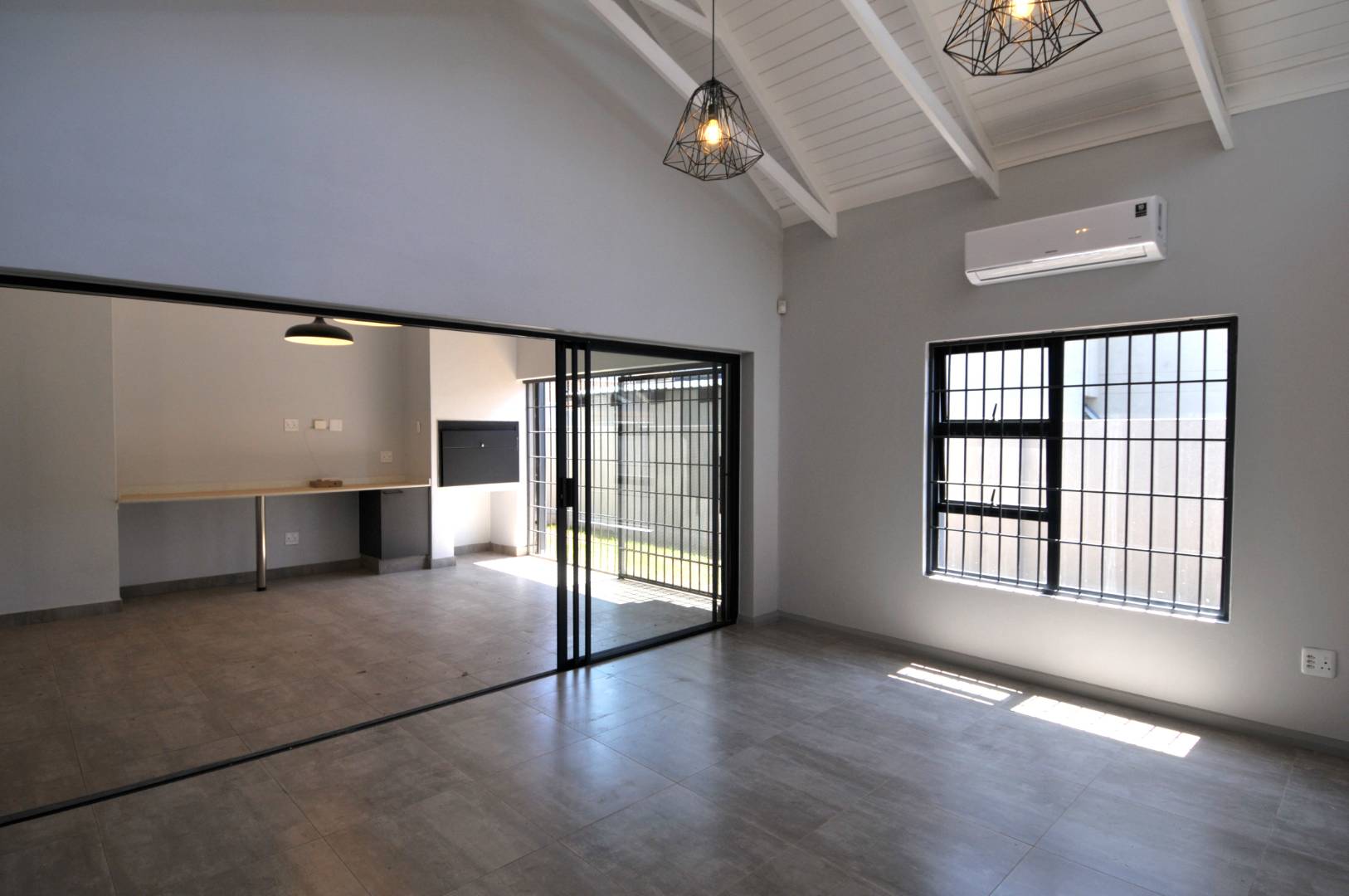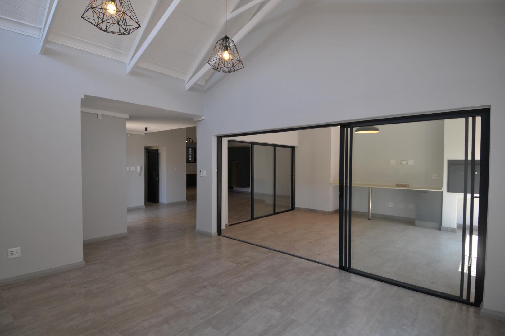 Step into an expansive layout that includes three versatile living areas, designed for both relaxed family life and seamless entertaining. The open-plan design extends effortlessly into an undercover entertainment area featuring a built-in braai, while sliding doors from the main living spaces allow for a perfect indoor-outdoor flow.