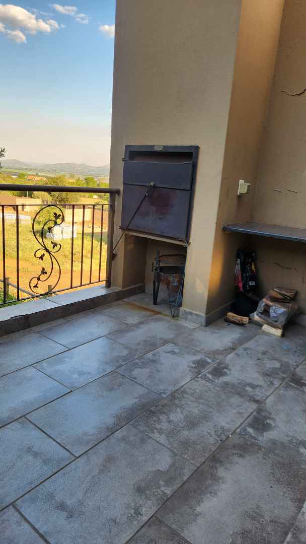 From the lounge, step out onto a delightful patio equipped with a built-in braai, ideal for hosting gatherings or enjoying tranquil evenings. The patio overlooks a beautifully manicured garden, providing a serene and picturesque backdrop that enhances the property's appeal.