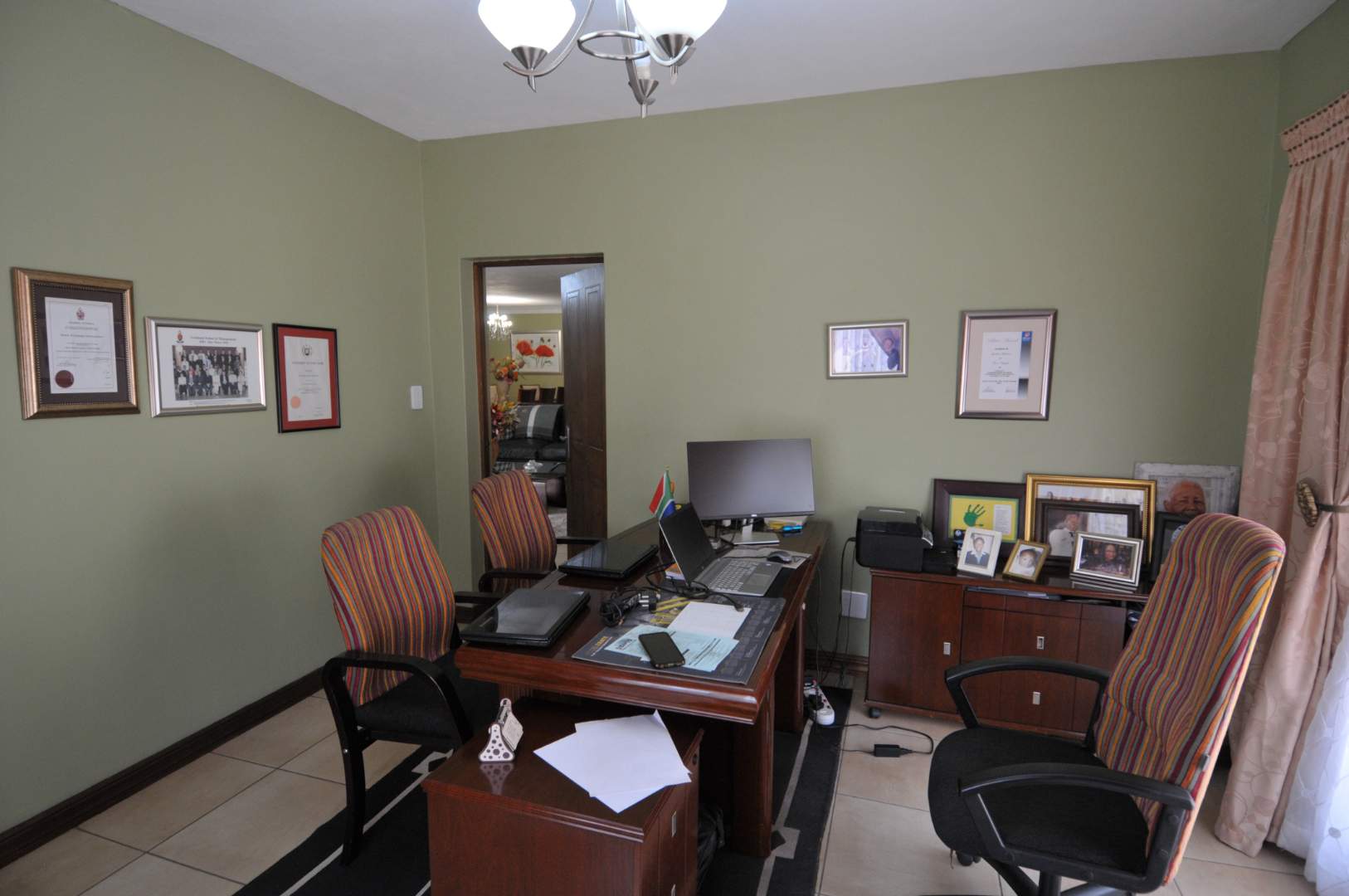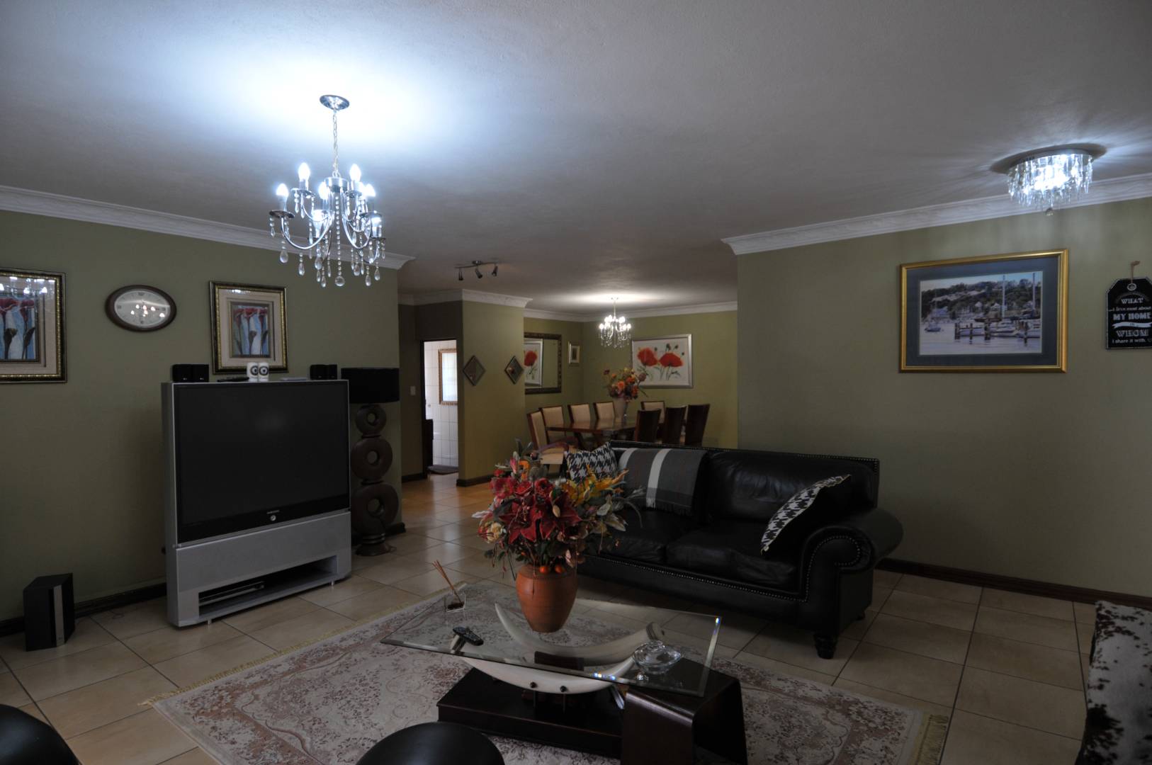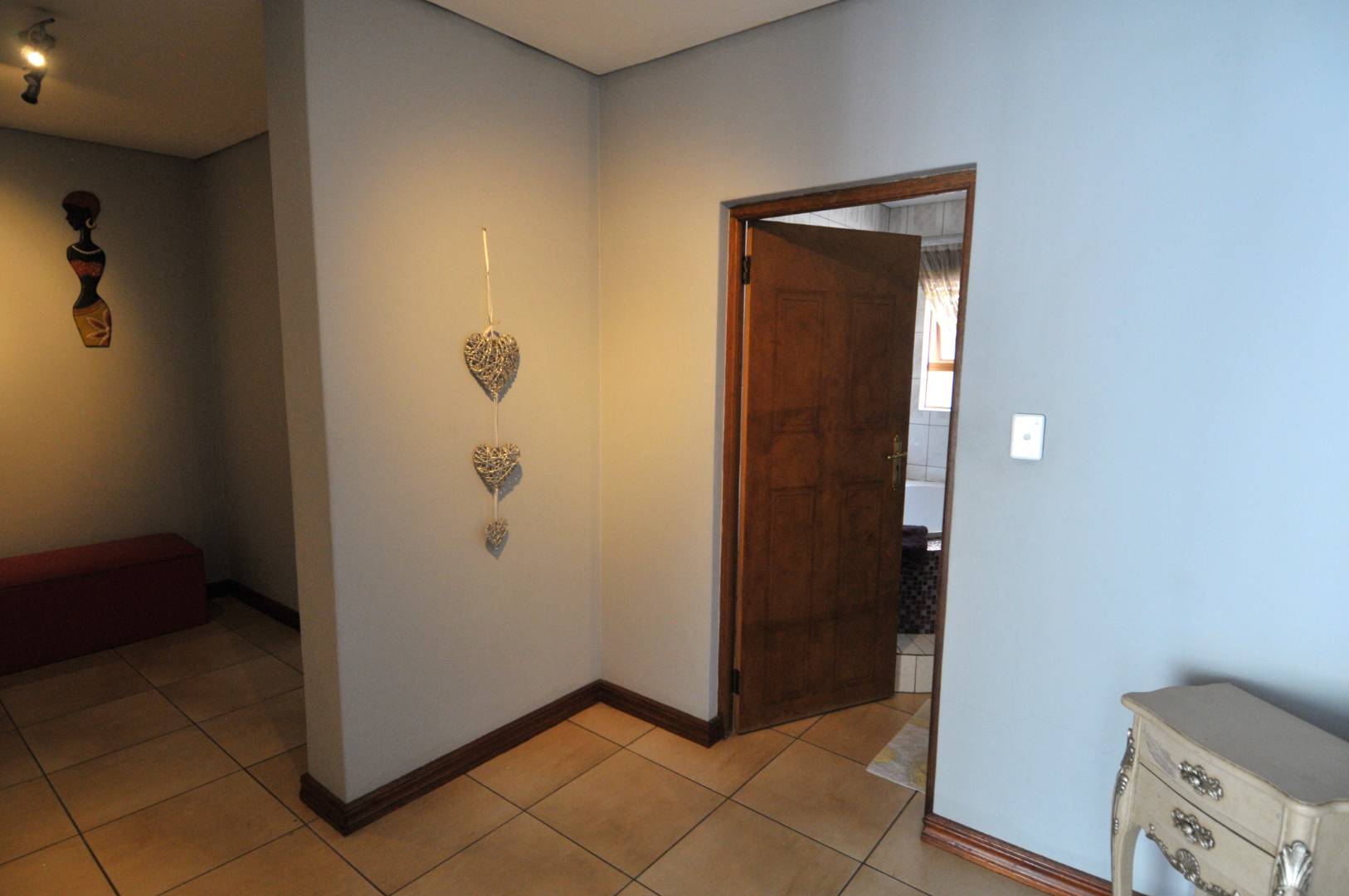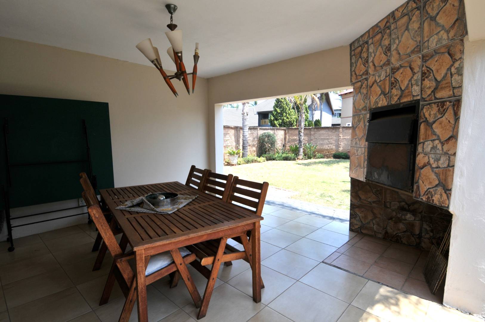 For outdoor entertaining, the covered braai area with a built-in braai is perfect for year-round gatherings. The large, wrap-around yard includes an expansive courtyard just off the kitchen, ideal for a morning coffee or herb garden. The property also features irrigation throughout the generous garden, making maintenance a breeze.