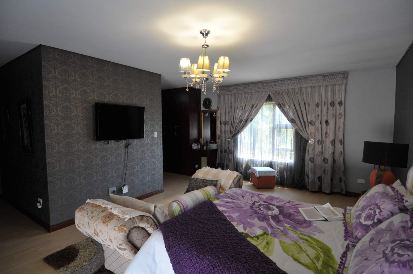 The modern kitchen is a chef’s dream, boasting a central block bar, a two-plate gas stove, a traditional electric stove, and dual ovens—ideal for cooking and entertaining. A separate scullery keeps the main kitchen area clean and organized, while a pantry tucked under the stairs provides valuable extra storage.